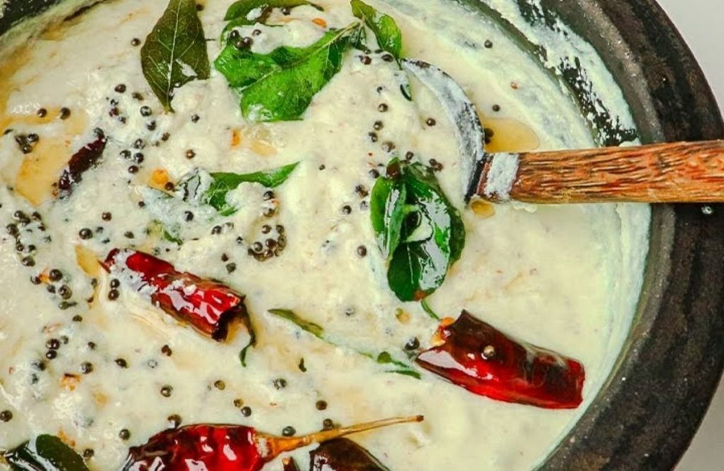 - Pour this tempering over the pachadi and mix lightly.