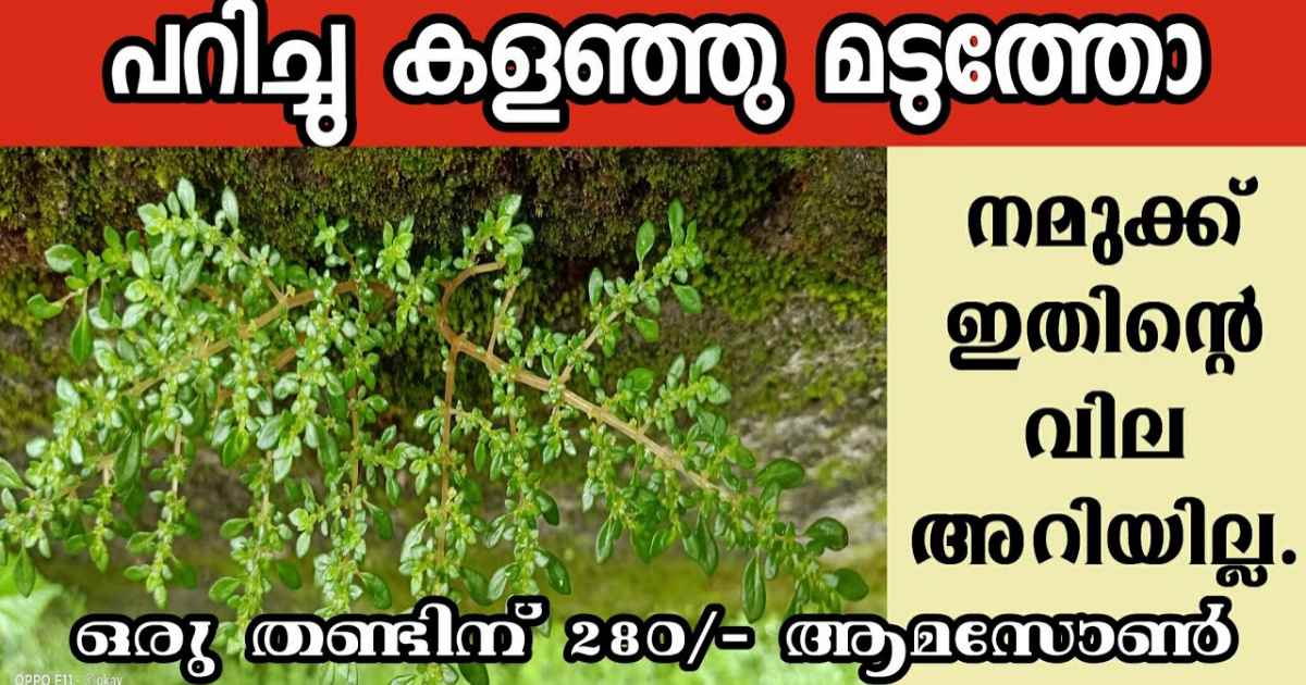 അലങ്കാര സസ്യങ്ങളിലും പ്രധാനപ്പെട്ടവയാണ്. ഒരു വിലയും കൊടുക്കാതെ നമ്മളിൽ പലരും പറിച്ചു കളഞ്ഞു മടുത്ത ഒരു സസ്യമാണ് മതിൽ പച്ച എന്ന വിളിപ്പേരിൽ സർവ വ്യാപകമായി കണ്ടു വന്നിരുന്ന ഈ ചെടി. പൈലിയ മൈക്രോഫില്ല എന്ന പേരിലാണ് ആമസോൺ പോലുള്ള മാർക്കറ്റിംഗ് വിപണി സൈറ്റുകളിൽ ഈ ചെടി അറിയപ്പെടുന്നത്. നമ്മുടെ മതിലിലും തൊടിയിലും നിറഞ്ഞു നിന്നിരുന്ന ഈ സസ്യത്തിന് ആമസോണിൽ ഉള്ള വില കേട്ടാൽ നിങ്ങൾ ഞെട്ടും.
