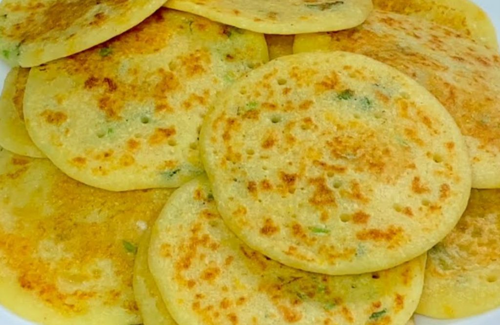 നല്ലതുപോലെ മിക്സ് ചെയ്തു എടുക്കുക. ആവശ്യമെങ്കിൽ കുറച്ചു ക്യാപ്സിക്കവും കൂടി ഇതിലേക്ക് ചേർക്കാവുന്നതാണ്. ശേഷം ഒരു പാൻ എടുത്ത് കുറച്ച് വെളിച്ചെണ്ണ തൂക്കി അതിലേക്ക് മാവ് കോരി ഒഴിച്ച് ചെറുതായി പരത്തി എടുക്കുക. എന്നിട്ട് ഇവയ്ക്ക് മുകളിലായി ഒരു മുക്കാൽ ടീസ്പൂൺ വെളിച്ചെണ്ണ വിതറി കൊടുക്കുക. ഒരു ഭാഗം വെന്തു കഴിയുമ്പോൾ