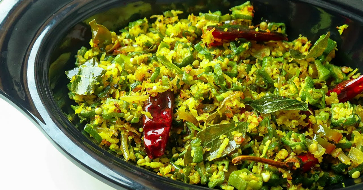 Vendakka Thoran is a traditional Kerala dish featuring stir-fried okra (vendakka) mixed with grated coconut and aromatic spices. This simple yet flavorful preparation is a staple in many homes, celebrated for its health benefits and quick cooking time.To make Vendakka Thoran, start by washing and slicing fresh okra into small pieces. In a pan, heat coconut oil and add mustard seeds, allowing them to splutter. Then, sauté chopped onions, green chilies, and curry leaves until fragrant. Add the sliced okra and a pinch of turmeric, cooking until the okra is tender yet retains its shape. Finally, mix in freshly grated coconut and adjust salt to taste. Stir well to combine all the ingredients and cook for an additional few minutes. Serve Vendakka Thoran hot as a side dish with rice and dal, or as part of a larger Kerala feast. Its vibrant flavors and textures make it a beloved addition to any meal!
